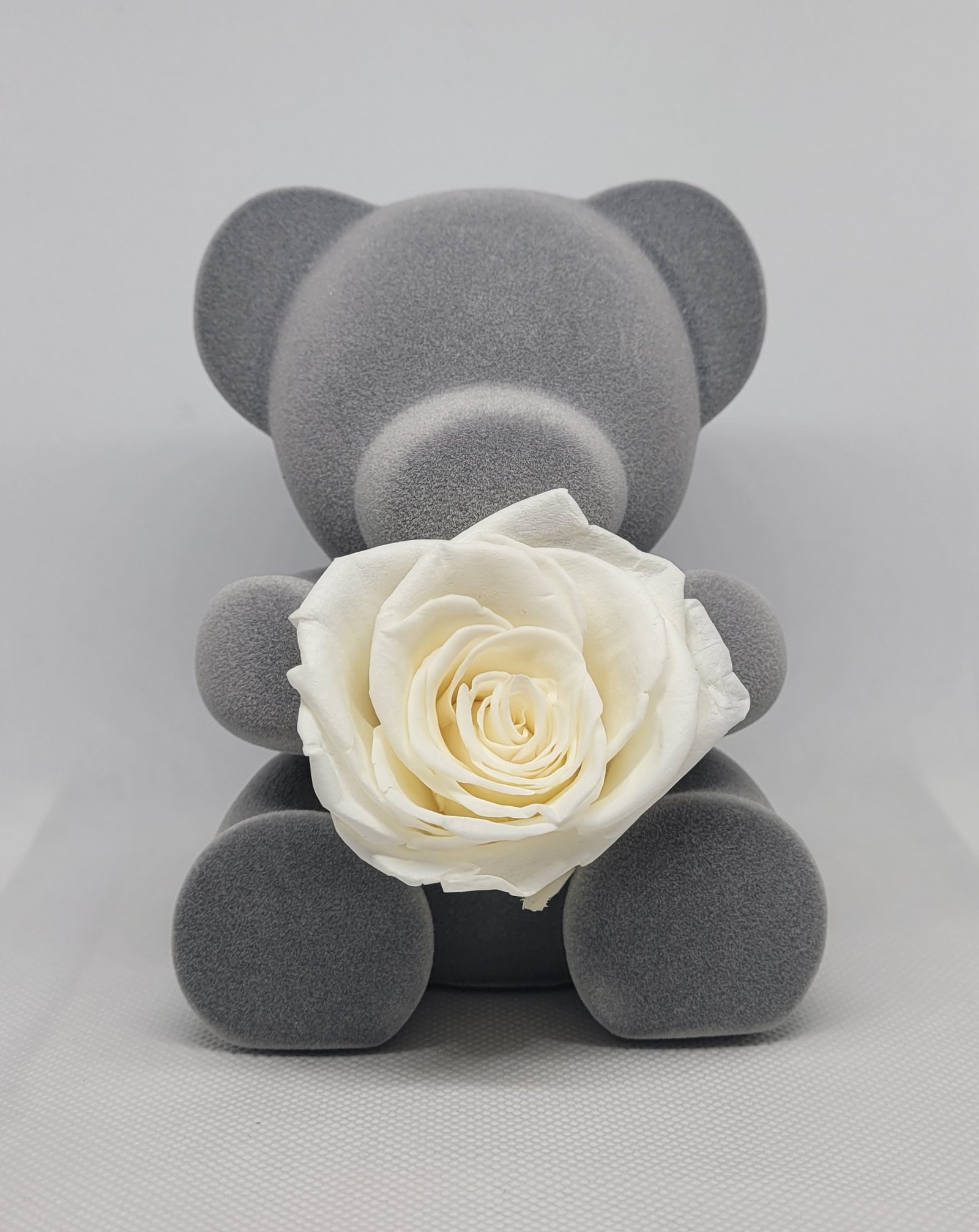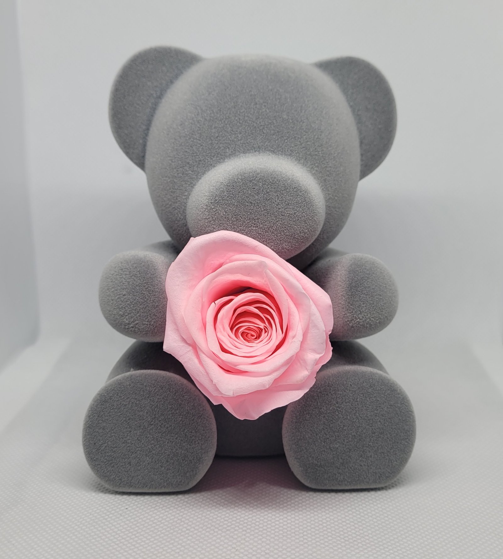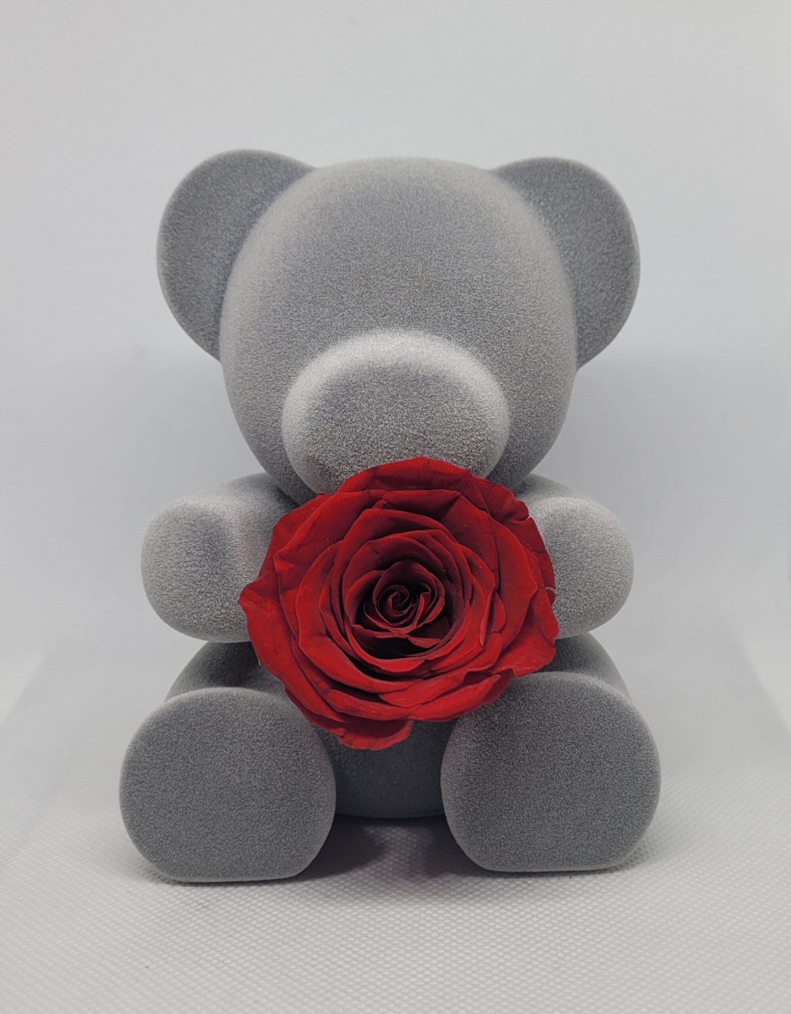 Meet the gift that says “I thought about you” without needing a long message. Our Forever Rose Bear is a velvet-like (flocked) teddy bear designed to hold a real preserved rose—a keepsake-style gift that looks beautiful on a desk, shelf, or nightstand.