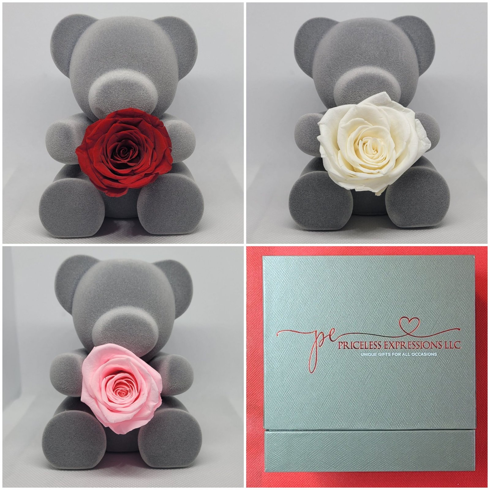 Choose the rose color that matches the moment: Red for classic love, Pink for sweetness and admiration, or White for elegance and new beginnings. Each bear arrives packaged in a Priceless Expressions  gift box, making it a polished, ready-to-gift choice for anniversaries, Valentine’s Day, birthdays, proposals, or “just because.”